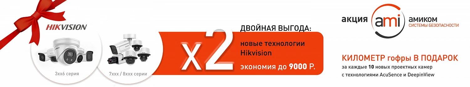 С 6 октября по 31 декабря при покупке в Амиком 10 проектных камер Hikvision серий 3, 7 и 8 можно получить километр ПВХ или ПНД гофры! Бонус полагается за каждые 10 новых камер с технологиями AcuSence и DeepinView.