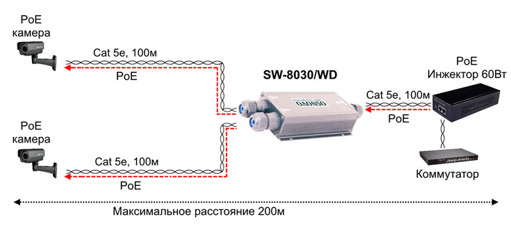 - максимальное расстояние 200 метров;