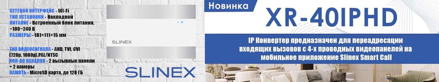 Новый конвертер Slinex XR-40IPHD предназначен для переадресации входящих вызовов с 4-х проводных видеопанелей на мобильное приложение Slinex Smart Call. Эта функция позволяет отвечать на входящие вызовы с панелей, открывать замки и просматривать изображение с камер, используя смартфон.