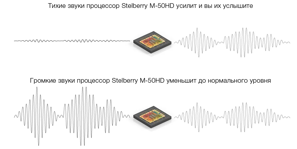 Звуковой процессор микрофона фильтрует речь, очищая ее от посторонних шумов, и выравнивает по громкости. Фильтрация заключается в том, что звук очищается от низких и высоких частот, таким образом, повышается разборчивость и четкость речи.