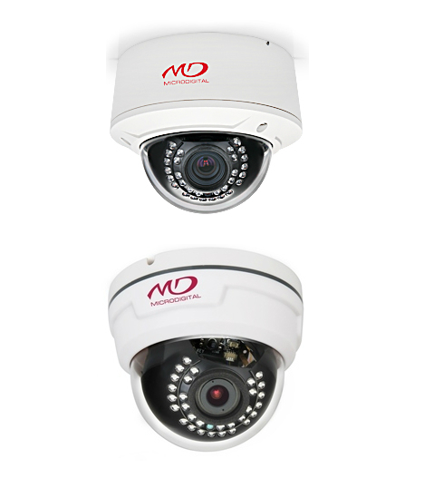 Новинки MicroDigital предназначаются для установки в помещениях. IP видеокамера MDC-M7040VTD-30 снабжается встроенным вариообъективом 2.8~12.0 мм и может решать различные задачи — от съёмки крупных планов с широким углом обзора до наблюдения за протяжёнными коридорами и проходами. Купольная модель MDC-M7040FTD-30 с объективом 3.6 мм подходит для видеоконтроля в помещениях среднего размера. Обе камеры рассчитаны на круглосуточную работу. Для этого они используют функцию день/ночь с убираемым ИК фильтром и встроенные ИК диоды для ночного освещения на дистанции 30 метров. В умеренно контрастном освещении цифровой режим DWDR уравновешивает яркость разно освещённых участков.