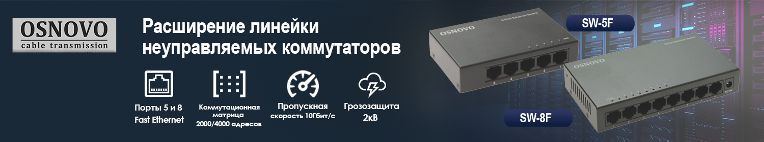 Новые неуправляемые коммутаторы Osnovo SW-5F и SW-8F – это оптимальное сочетание надежности, производительности и простоты использования по доступной цене.