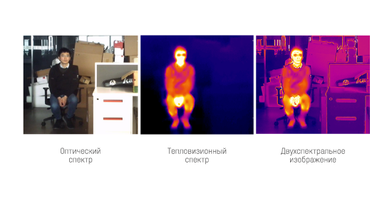 Изображение, полученное с разных объективов, можно просматривать совместно, по отдельности, и в виде наложения кадров. Совмещение изображений дает возможность более точного определения события. Оптический модуль позволяет не только зафиксировать тревожную ситуацию, но и детально рассмотреть её, приняв адекватные меры к её устранению. С помощью тепловизионного объектива можно вести охранное наблюдение в абсолютной темноте, при плохой погоде или, если обзору объекта мешают кусты, деревья и другие препятствия.