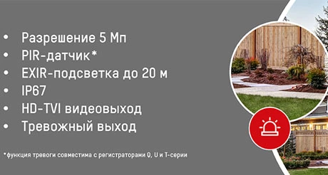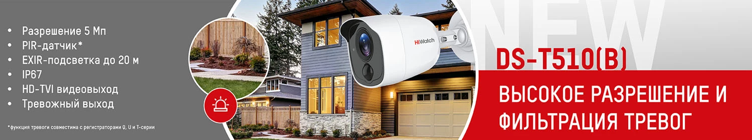 Под брендом HiWatch выпущено обновление модели DS-T510(B). Эта TVI-камера корпусе получила PIR-датчик и матрицу 5 Мп. Теперь в камере доступны большее количество сценариев для систем безопасности, так как она оснащена тревожным выходом. PIR-датчик, реагирующий на движение, и тревожный выход в чрезвычайных ситуациях активируют звуковую сигнализацию, стробо-лампу, управляет замком, включает другие дополнительные устройства.