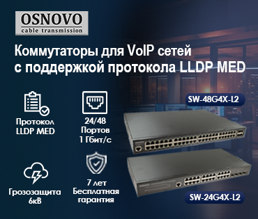 Линейка управляемых коммутаторов OSNOVO SW-24G4X-L2 и SW-48G4X-L2 обеспечивают полную поддержку протокола LLDP MED для автоматизации VoIP-сетей.