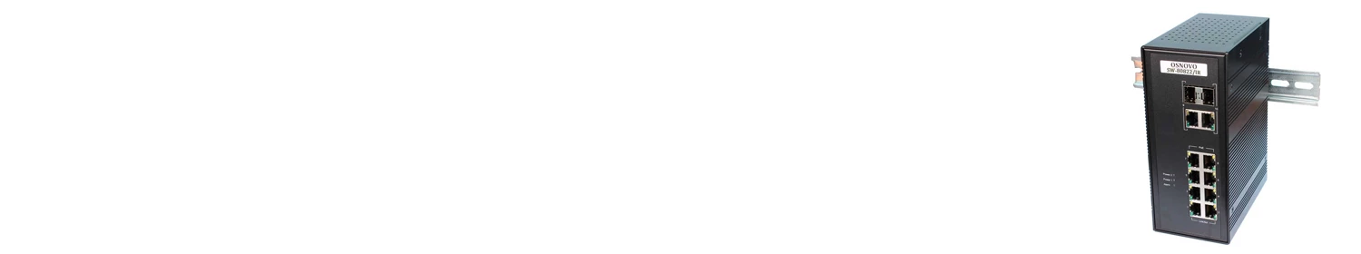 Промышленный коммутатор с уровнем управления L2 (Web Smart). Оснащен 10-ю портами Gigabit Ethernet (от 10 Мбит/с до 1 Гбит/с) — 8 стандартных с поддержкой PoE и 2 комбинированных (RJ-45 + SFP). Поддерживает топологию построения ЛВС типа «кольцо» и «каскад». Бюджет мощности PoE — 240 Вт (30 Вт на 1 разъем). Запитывается от источника постоянного тока 2xDC 45–57 В. Определяет зависшие устройства, подключенные к портам, и перезагружает их в автоматическом режиме.