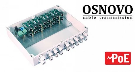 Устройство представляет собой восьмиканальный модуль грозозащиты для ЛВС со скоростью передачи данных до 1Гбит/с, который обеспечивает двухступенчатую защиту линий PoE и электропитания от тока разряда 2,5 – 10 кА. Время срабатывания защиты <1 нс. Оборудование смонтировано в поликарбонатный корпус для уличной установки с классом защиты IP65 и рабочим диапазоном температуры от -40 до +70°C. Подключение кабелей осуществляется винтовыми клеммами.