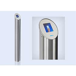 Стойка со встроенным считывателем и цветным дисплеем PERCo-IRP01 может устанавливаться на объектах с повышенными требованиями к дизайну проходной и комфортности прохода: в правительственных учреждениях, в холлах и вестибюлях бизнес-центров, банков, офисных зданий. Она представляет собой колонну из нержавеющей стали со встроенным в нее считывателем бесконтактных карт. Под стеклянной крышкой находится цветной ЖК-дисплей с анимационной индикацией режимов работы котроллеров СКУД. Для карт HID дальность действия не превышает 6 см, для карт EM-Marin составляет 7 см.
