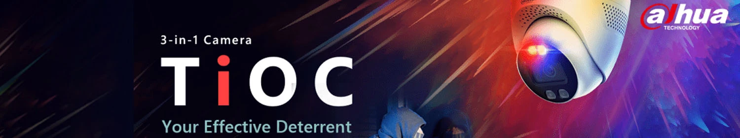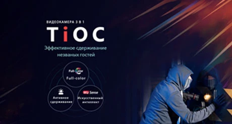 Компания Dahua представляет новую серию камер TiOC. Название - сокращение от «Three in One Camera, («камера 3 в 1)». В этих камерах объединяются три технологии: Full-color, искусственный интеллект, и функцию активного сдерживания. Такая комплектация позволяет одной камерой заменить несколько устройств.