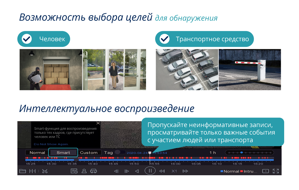 В видеокамерах TiOC работает искусственный интеллект, который делает работу тревожной сигнализации более точной. Его главная задача в том, чтобы отсекать ложные срабатывания сигнализации, характерные для детекторов движения предыдущих поколений.