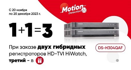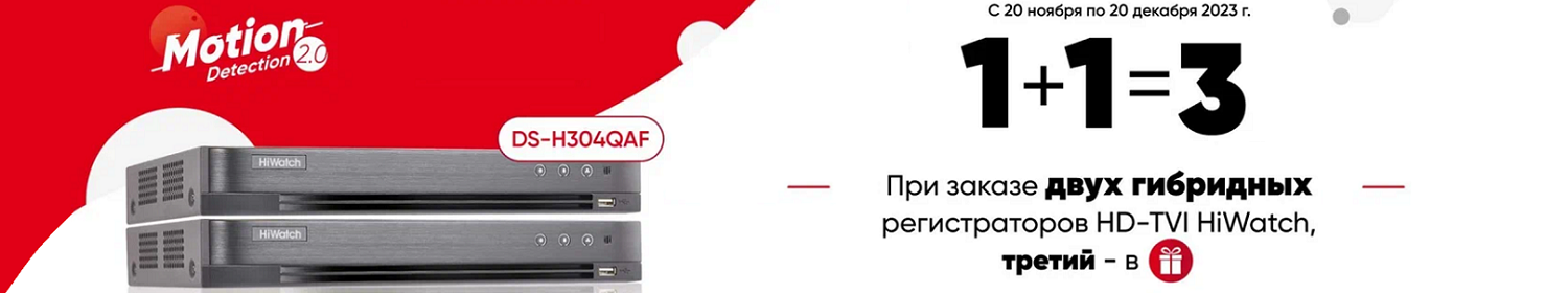 Объявляется акция на 4-канальный гибридный HD-TVI видеорегистратор c функцией распознавания лиц, технологией AoC и Motion Detection 2.0 HiWatсh DS-H304QAF. При покупке двух видеорегистраторов, третий в подарок.