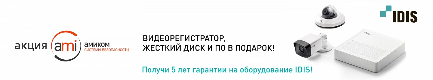 5 лет гарантии на оборудование IDIS + видеорегистратор в подарок!