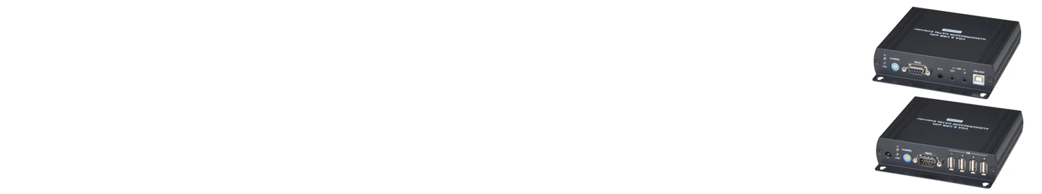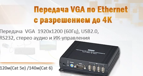 Комплекс VKM04 разработан для передачи данных с интерфейса VGA (до 1920х1200@ 60 Hz) по витой паре. Максимальная скорость в системе – 850 Мбит/с. Видеосигнал стабильно принимается на расстоянии до 120 м (для кабеля 5-й категории) или 140 м (для 6-й категории). Кроме того, оборудование позволяет передавать через витую пару сигналы RS232, USB 2.0 (4 шт.), аудио в режиме «стерео» и управление с ИК-порта. Расстояние передачи данных может быть значительно увеличено за счет установки повторителей SR01 на каждых 100 метрах кабельной трассы.