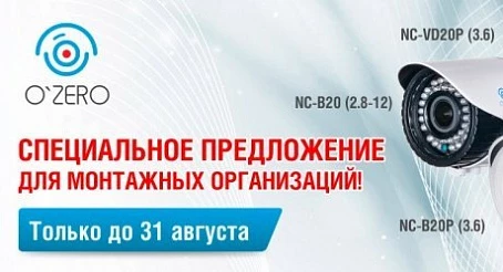 Уважаемые инсталляторы и специалисты рынка безопасности! Сообщаем вам, что в период с 14 по 31 августа вы можете приобрести IP-камеры ТМ O’ZERO с наиболее востребованными характеристиками по очень низкой цене.