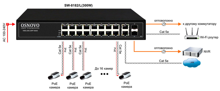 - Рабочая станция с ПО «Оператор» с коммутатором, или видеорегистратор;