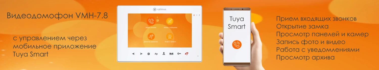 Управление видеодомофоном Optimus VMH-7.8 можно выполнять со своего смартфона. Это стало возможно благодаря приложению для мобильного телефона Tuya Smart.