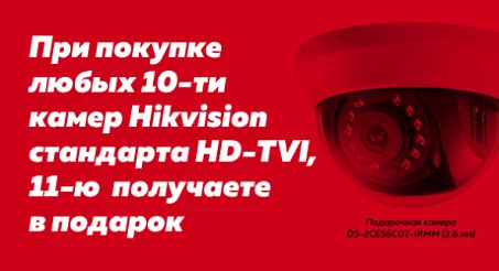 Мы любим своих клиентов и любим дарить подарки! В разгар сезона компания "АМИКОМ" объявляем акцию для монтажных организаций «10+1». Купив любые 10-ть видеокамер торговой марки HIKVISION стандарта HD-TVI в Торговом Доме «Амиком», вы получаете в подарок одну из самых популярных моделей на рынке DS-2CE56C0T-IRMM.