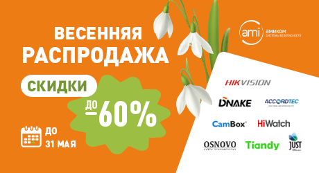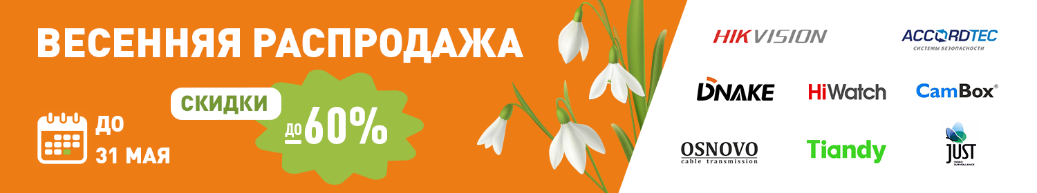 В распродаже участвуют товары брендов Hikvision, Hiwatch, Tiandy, Accordtec, CamBox, DNAKE, Just и OSNOVO в наличии на складе Амиком в Москве.