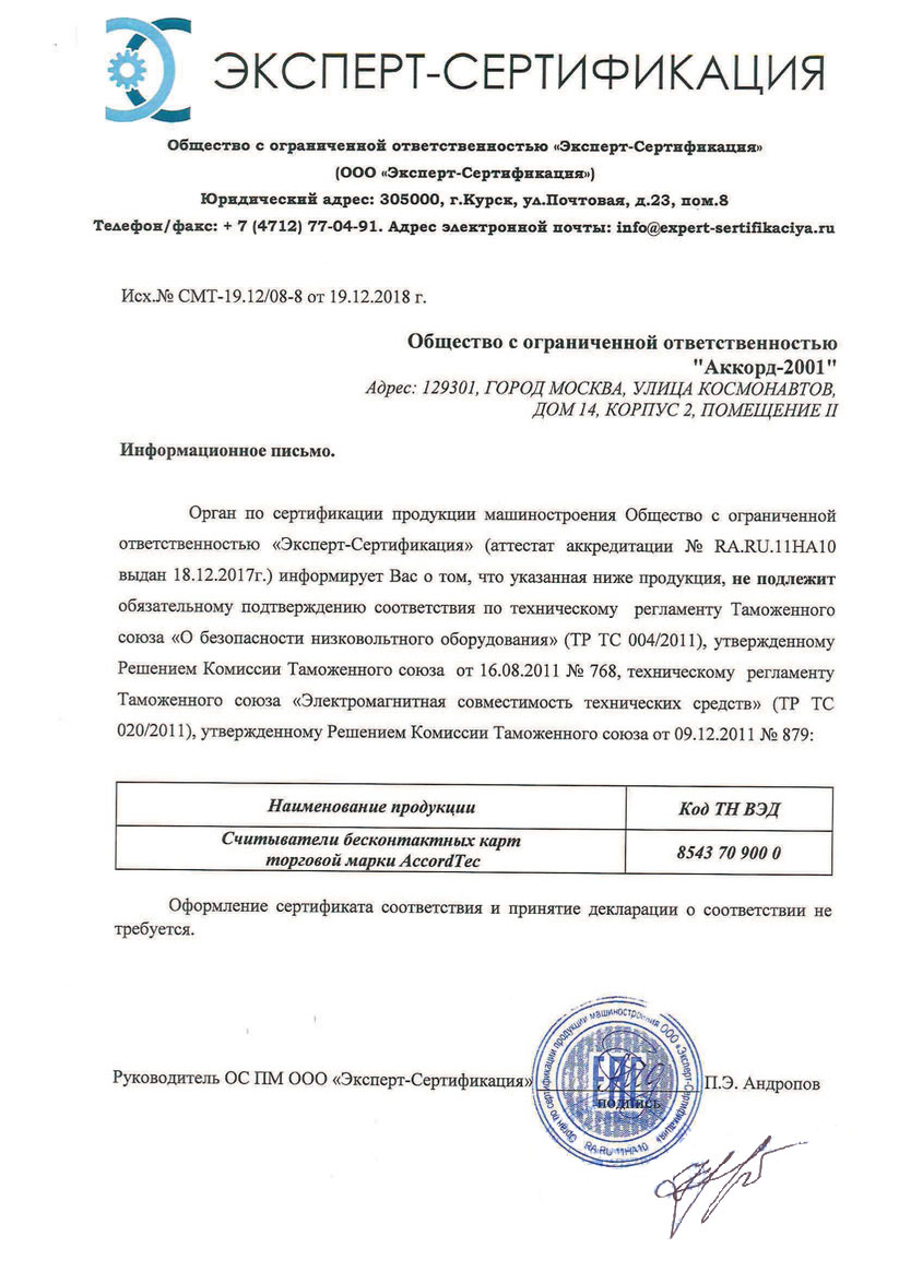 Сертификат DS-K4T100-U2