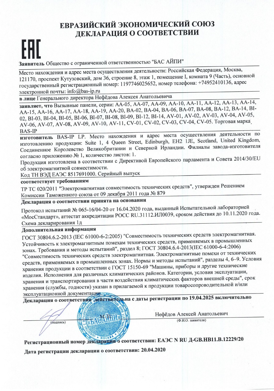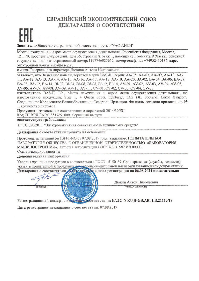 Декларация о соответствии AT-EL201A